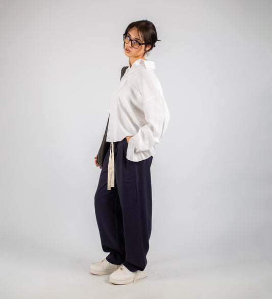 PLEATED BAGGY LINEN PANTS – Midnight Blue