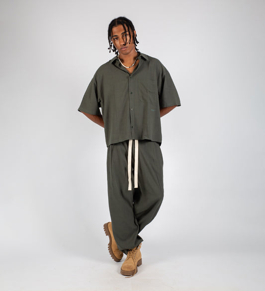 PLEATED BAGGY LINEN PANTS – Khaki