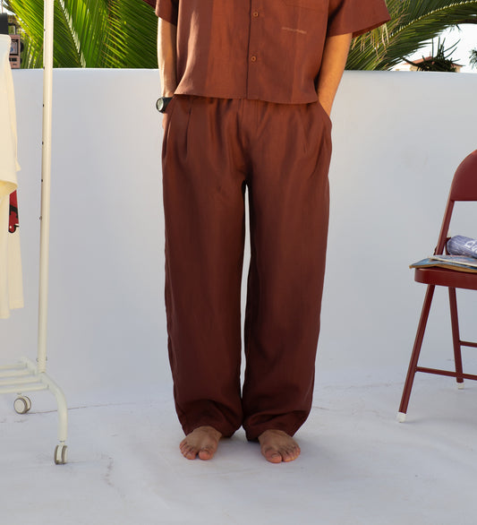 PLEATED BAGGY LINEN PANTS – Mocha